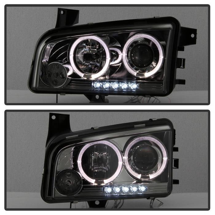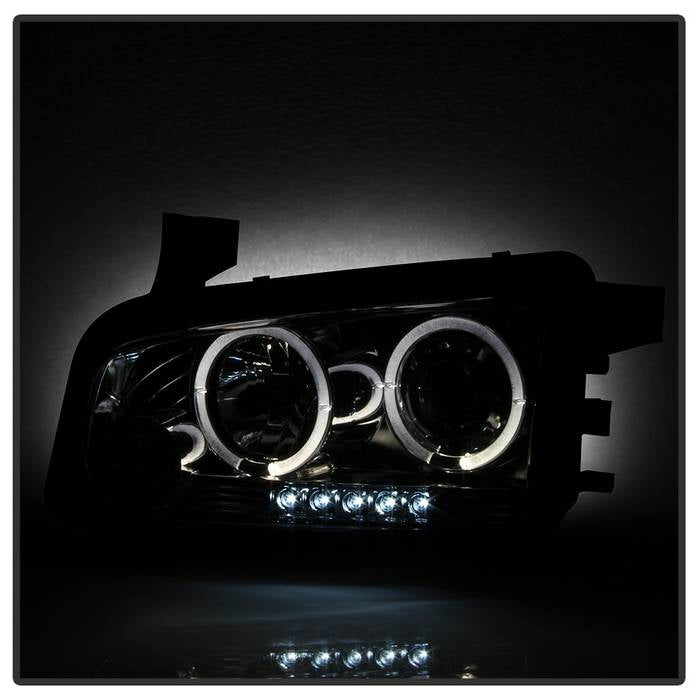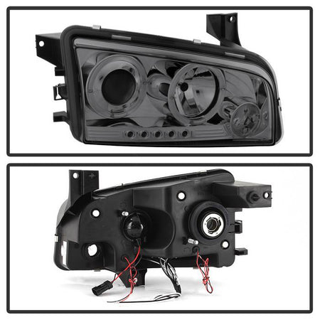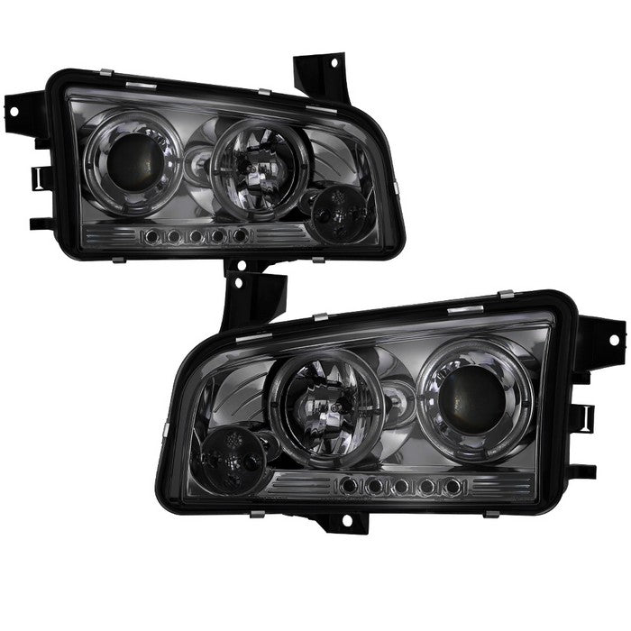 ( Spyder Signature ) Dodge Charger 06-10 Projector Headlights - Halogen Model Only ( Not Compatiable With Xenon/HID Model ) - LED Halo - LED ( Replaceable LEDs ) - Smoke - High H1 (Included) - Low 9006 (Not Included)