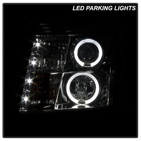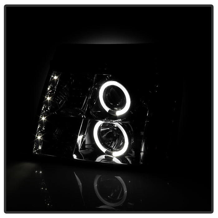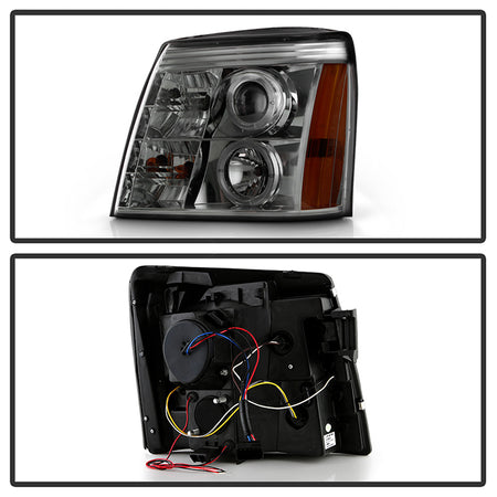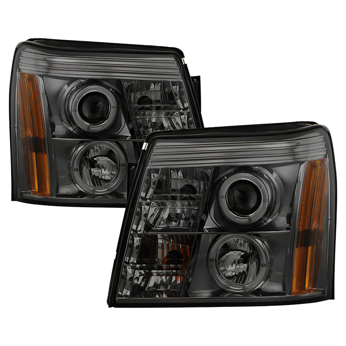 ( Spyder Signature ) Cadillac Escalade 02-03 Projector Headlights - Halogen Model Only ( Not Compatible With Xenon/HID Model ) - LED Halo - DRL - Smoke - High H1 (Included) - Low H7 (Included)