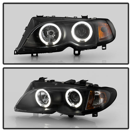 ( Spyder Signature ) BMW E46 3-Series 02-05 4DR Projector Headlights 1PC - LED Halo - Black - High H1 (Included) - Low H7 (Included)