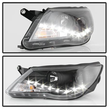 ( Spyder Signature ) Volkswagen Tiguan 09-11 Projector Headlights - DRL - Black - High H1 (Included) - Low H7 (Included)