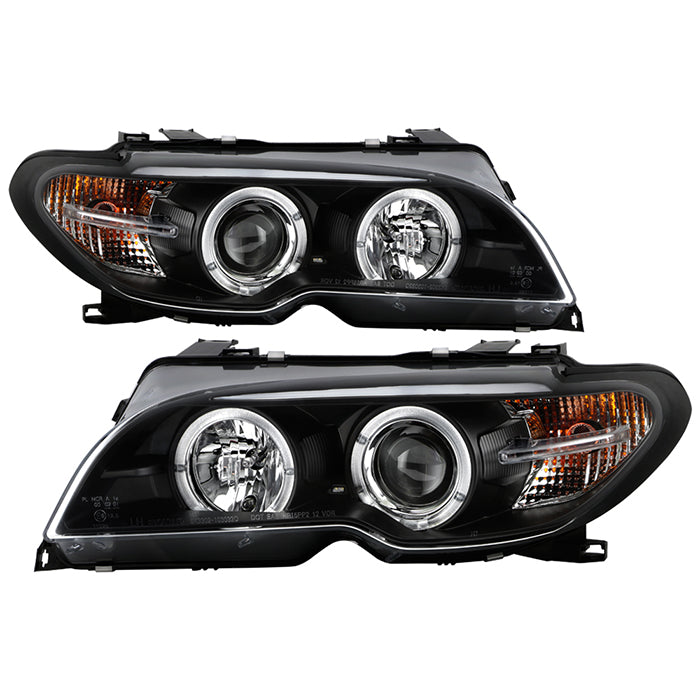 ( Spyder Signature ) BMW E46 3-Series 04-06 2 DR Projector Headlight - Halogen Model Only ( Not Compatible With Xenon/HID Model ) - LED Halo - Black - High H1 (Included) - Low H7 (Included)