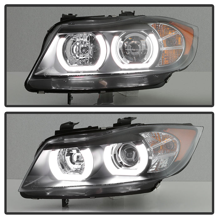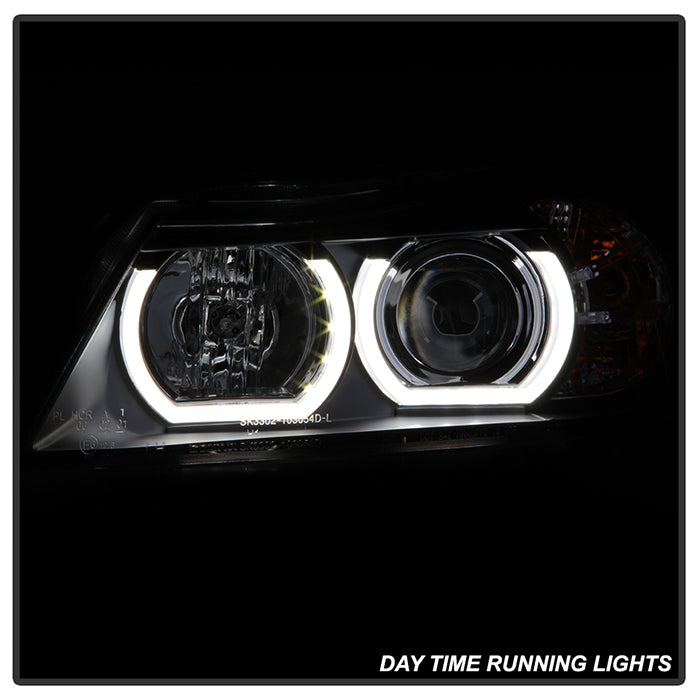 ( Spyder Signature ) BMW E90 3-Series 06-08 4DR Version 2 Projector Headlights - AFS HID Model Only ( Not Compatible with Halogen Model ) - Light Bar DRL - Black