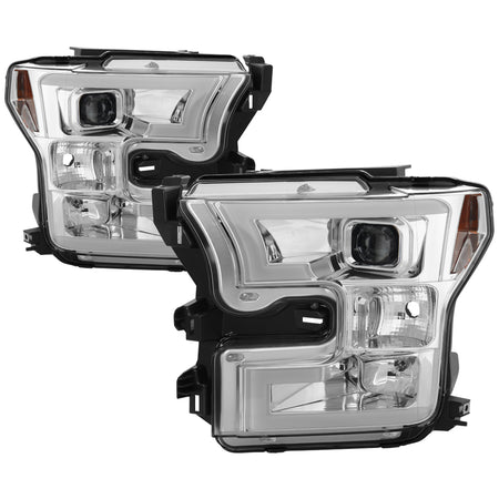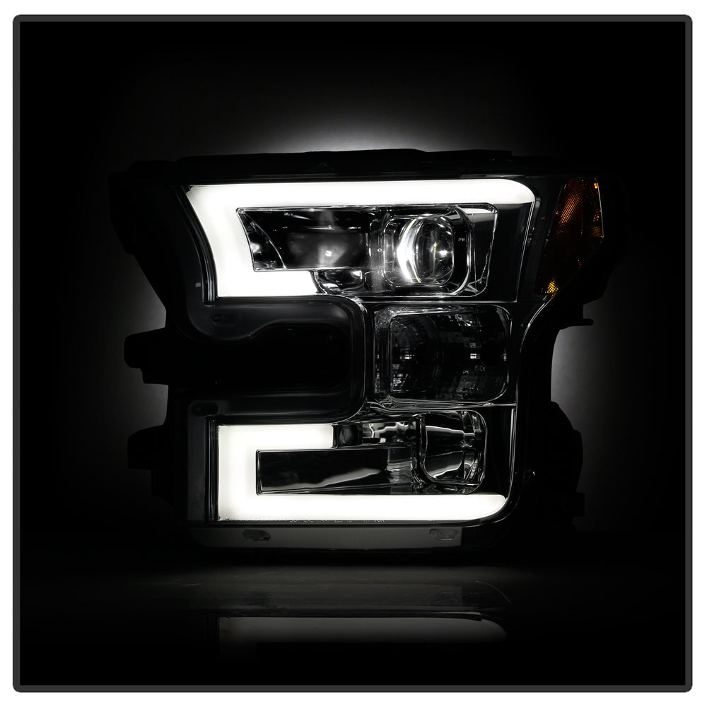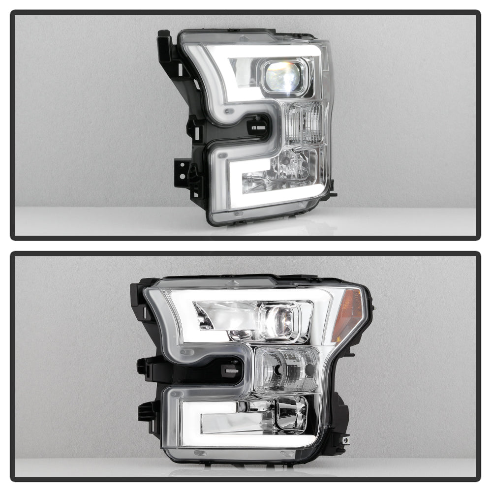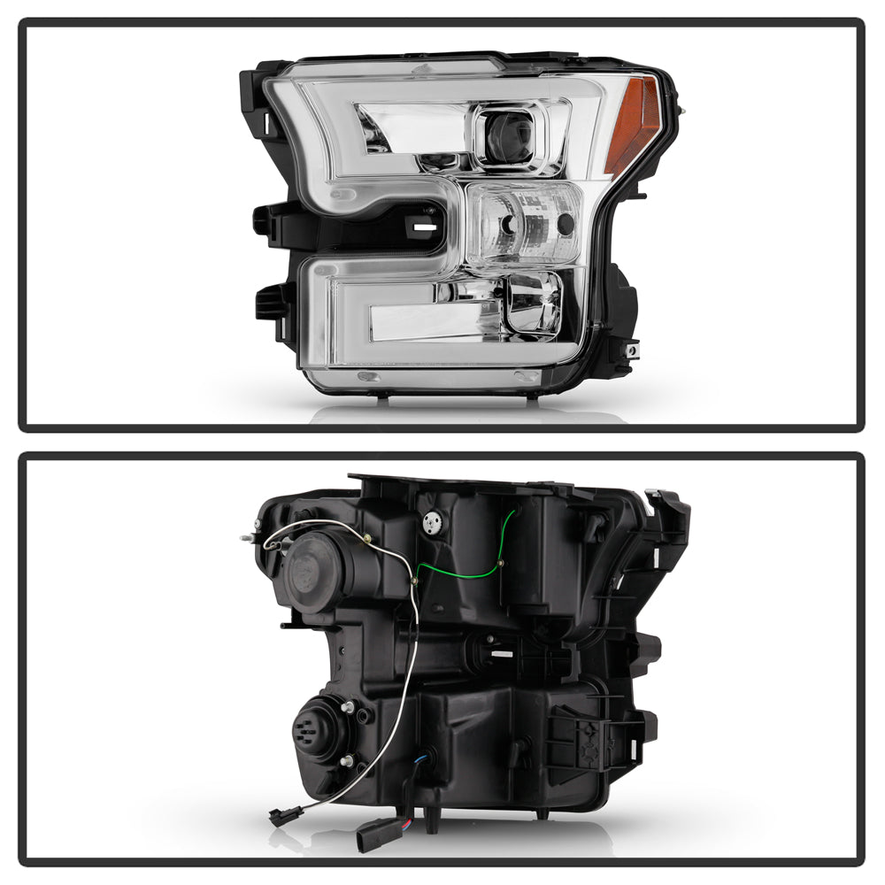 ( Spyder Platinum ) Ford F150 2015-2017 Halogen Model Only ( Do Not Fit Factory LED Model ) High-power LED Module (Low Beam) Equipped Headlights - Chrome - Low Beam-LED ; High Beam-H1(included) ; Signal-7444NA(Not Included)